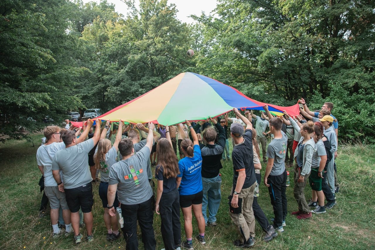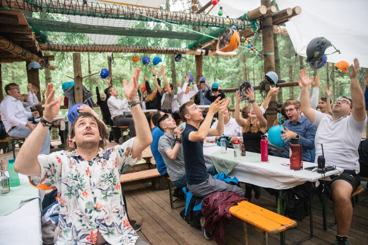 Baumhauscamp bedeutet aber auch Bauen. Der zweite Hauptfokus neben unserem geistlichen Thema liegt natürlich auf dem Bauen. Da hatten wir uns dieses Jahr einiges vorgenommen: Zu den bereits vorhandenen fünf Plattformen plus Steg kamen noch einmal vier Plattformen, ein weiterer Steg, unsere allererste Netzplattform sowie eine geniale Rutsche dazu. Darauf können wir echt stolz sein! Es ist jedes Jahr am Ende des Camps beeindruckend zu sehen, wie viel wir in dieser kurzen Zeit geschafft haben. Natürlich war es anstrengend, natürlich haben wir geschwitzt, und manchmal hatte man auch keine Lust auf den zehnten Bund in Folge. Aber jeder hat für den Erfolg des Teams mitgearbeitet. Die Jugendlichen hatten die Chance, ihre Komfortzone zu verlassen und über sich hinauszuwachsen. Der eine hat vielleicht seine Höhenangst überwunden, der andere hatte das erste Mal Hammer und Nagel in der Hand, wieder ein anderer hat zum ersten Mal jemanden gesichert. Im Baumhauscamp bekommt jeder die Chance, über sich hinauszuwachsen.