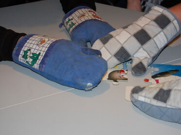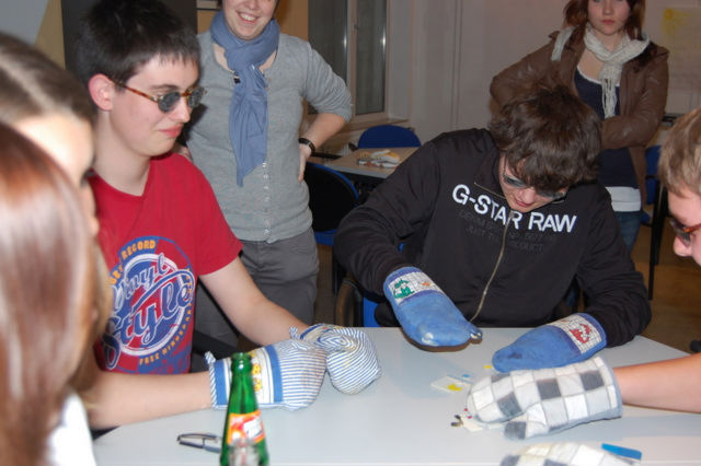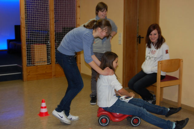 Bei dem basteln eines Hochzeitskleid waren gerade die Damen sehr kreativ und die Herren mussten den Hochzeitswalzer mit tanzen. Das essen geben mit verbundenen Augen wurde genauso geübt wie das schmieren von Pausenbroten. Als letzte Aufgabe stand Puzzeln unter erschwerten Bedingungen auf dem Plan. So puzzelte man fleißig mit Spezialbrille, Handschuhe und Ohrenstöpseln.