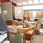 Schon eine Woche vorher müssen Zelte aufgebaut, Tische, Bänke und Regale aufgeschlagen und bestückt werden. Viele Wege hoch in den Speicher und zurück sind notwendig und viele Hände und Beine, die das alles erledigen. Dann wird 1 Woche lang sortiert und drapiert, bis alles verkaufsfertig ist und die Gäste und Käufer kommen können.