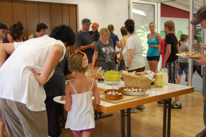Am 5. August trafen sich Kinder und Mitarbeiter vom CVJM um ein Sommerliches Büfett zu gestalten. Viele leckere Sachen haben die Kinder und ihre Betreuer dafür gezaubert. Die Eltern durften sich gemeinsam mit ihren Kindern davon überzeugen, dass es nicht nur gut aussah sondern, dass es auch hervorragend schmeckte.