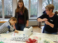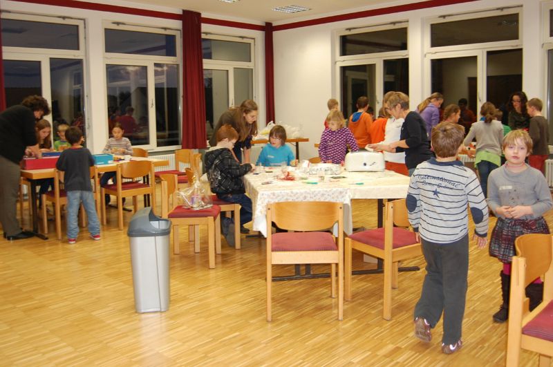 Am 6. Dezember war es wieder soweit, unsere jährliche Bastelaktion für Weihnachten fand statt. Es trafen sich über 40 Kinder im Gemeindehaus um für Mama, Papa, Tante, Onkel, Oma, Opa, Bruder ... Weihnachtsgeschenke zu basteln. Die Kinder waren sehr ausdauernd und kreativ. Es entstanden viele kleine Kunstwerke. Unsere Einpacker hatten alle Hände voll zu tun. Sie durften den ganzen Nachmittag die tollen Ergebnis mit den Kindern zusammen verpacken. Dieser Nachmittag machte den Kindern und auch den Mitarbeitern viel Spaß.