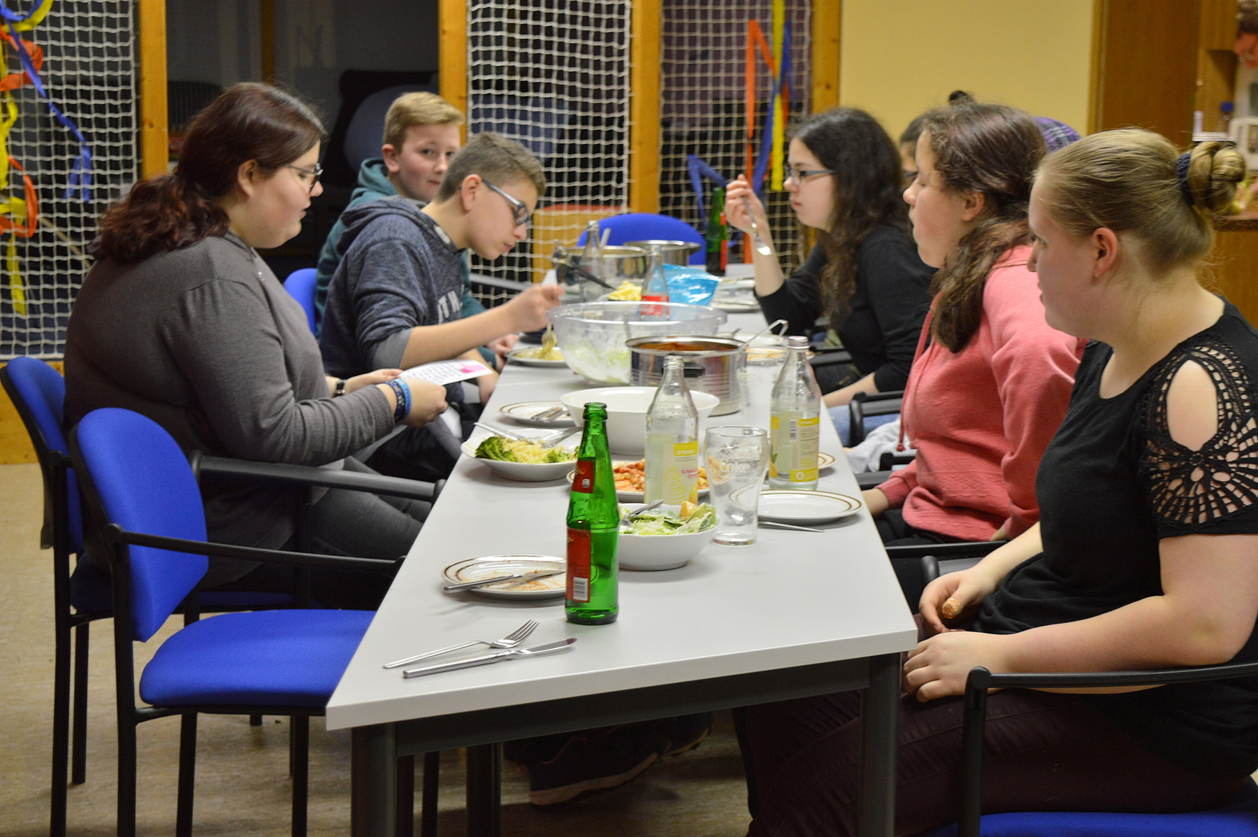 Einige Jugendliche trafen sich am Samstag den 10. März um gemeinsam zu kochen. In zwei Gruppen traten sie gegeneinander an. Jede Gruppe dachte sich kreative und schmackhafte Rezepte aus und kochte diese sofort. Der Jury fiel die Bewertung sehr schwer, da jedes der präsentierten Gerichte etwas Besonderes war.