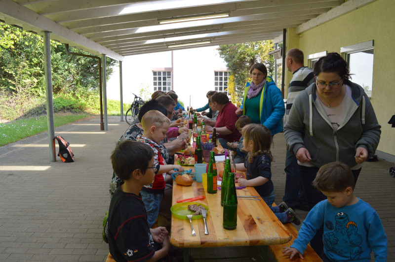 1. Mai 2016, auch dieses Jahr machte das Wetter uns einen Strich durch die Rechnung. Die Fahrradtour musste leider ausfallen. Die Wanderer ließen sich aber nicht abschrecken vom Wetter. Mit Schirm und Regenjacke bewaffnet ging es auf Tour. Zum Glück benötigten wir beides nicht. Es war sogar möglich sich hinter dem Gemeindehaus gemütlich zum Essen nieder zulassen.